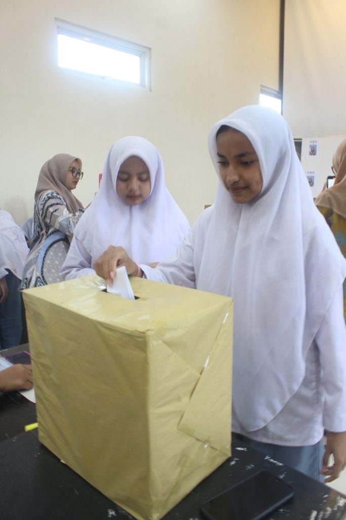 Tahapan berikutnya adalah pencoblosan pemilihan Ketua OSIS, yang berlangsung secara tertib dan demokratis. Setiap siswa diberikan kesempatan untuk memberikan hak suaranya, layaknya proses pemilu yang sebenarnya. Hal ini diharapkan dapat menanamkan nilai-nilai demokrasi, tanggung jawab, serta kedewasaan dalam memilih pemimpin.